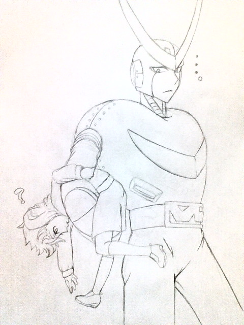 本当は肩に担がせたかったんだけど描けなかったっていう。